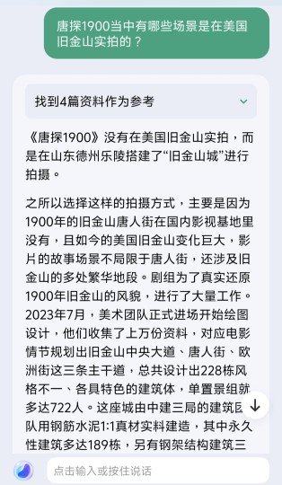 在此我想探讨一下题目这个问题。我们知道很多历史片古装片或者民国片近代片都会选择去影视基地/影城等人工造景的地方进行拍摄,一方面是因为当下已经找不到实景,但另一方面就是如果一些特效做得不好、不自然可能会导致场景有些假感。 唐探系列作为中国比较有代表性的走出国门的电影IP,它的一个特色就是唐人街会选取全球的唐人街,很多都是在国外取景拍摄,这是值得鼓励的。比如唐探2去了纽约、唐探3去了东京,他们拍得都很真实,也取得了很好的效果。而这部1900因为涉及历史题材而没有选择实拍,个人感觉有些场景挺美,但是当得知完全没有实拍时,我还是有点惊讶——因为我看到大量的外国演员,以及片尾那么宏伟的旧金山市政厅,内部也是有模有样的,我还真以为是去了旧金山拍摄……我以为这些演员很多是跟好莱坞那边借的群演呢… 根据以上我查到的资料,我并不反对国内团队尝试建造一个“旧金山城”,不过看看他们的数据:置景组700多人、建设施工团队6,000多人,耗时7个月,全球采购合适的家具装潢等等,这个开销成本是惊人的。而我在想,假如剧组真的去旧金山取景,利用一些技巧和特效,说不定1-2个月就能完成关键拍摄,并且你只用租赁一些场地、道具和布景,没有那么麻烦。 我还是鼓励唐探剧组多采用海外实拍的方式,这样更真实。 关于唐探系列的未来创作方向,首先我想指出“唐人街+探案”只是一个框架和思路,它里边填充的剧本是可以多元化的——本片1900就是对剧本多元化的第一次尝试。导演和编剧应该在全球范围内精选更多优质的多元剧本,并且借鉴更多优秀同类影片的经验——比如《憨豆特工》它是不是喜剧元素的?它的动作戏是否值得学习?《王牌特工》是不是也有喜剧元素和动作戏可以学习?昆汀和北野武有许多暴力美学的实践能不能借鉴?还有一些香港警匪片和周星驰的相关电影是否可以借鉴? 另外,这个执行“探案”的人,除了侦探,还能不能是什么华人警探或者国内派过去的特工?主角一定要刘昊然吗?别的男演员不行吗?或者女演员女主? 最后,我的建议是,美国还有2个城市可以拍唐人街:洛杉矶和芝加哥。他们都有非常优美的城市和自然景观,导演和编剧不妨大胆创作,可以拍一个时空设定在70~90年代的洛杉矶或者芝加哥的华人神探片啊,可以加入更多动作戏。 或者拍一个时空在近未来的,装备更丰富的,有很多特效,赛博风或者蒸汽波风格的,在洛杉矶或者旧金山湾区发生的故事,都是可以的。