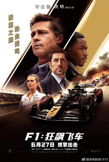 2025美国剧情片《F1:狂飙飞车》,全球累计票房5.98亿美元,定级PG-13,豆瓣评分8.7,时光网评分8.3,猫眼评分9.6,IMDb评分7.9,于2025年6月27日引进国内上映。
