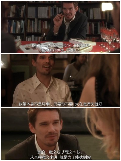 🎬爱在日落黄昏时丨2004丨80 mins 🇺🇸【美】理查德·林克莱特/编+导 ↓↓ 『一部靠对白取胜的爱情文艺片』【8.8/10】 (影感3.6丨表达2.5丨表演1.8丨美感0.9) · 🎞️观影笔记 ↓↓ 0️⃣整体感受 结尾恰到好处,延续了第一部大量对白的特色,只是这次的聊天话题更加现实,叠加了九年的生命经历后,各自都积蓄了许多情绪。 · 再次重逢,男女已然褪去了当初的青涩和热情,短暂的寒暄试探过后,大量的现实话题交代各自的世界观,随后过渡到个人生活。 · 时间是无情的,大量流淌着的现实经历,不断冲刷着彼此对于浪漫的认知,令人稍许安慰的,或许只有彼此信任袒露心声的默契啦。 · 爱在三部曲,其中的『爱在』另有所指,我想了想,也可以是出现在人生命中的短暂知心时刻,简单的陪伴,却能牵扯出万千思绪。 · 1️⃣影感【3.6丨4分】 ①视听享受丨0.9分 ②镜头剪辑丨0.9分 ③场面调度丨0.9分 ④结构设计丨0.9分 · 2️⃣表达【2.5丨3分】 ①逻辑严密丨0.8分 ②情节出彩丨0.8分 ③主题深刻丨0.9分 · 3️⃣表演【1.8丨2分】 ①角色魅力丨0.9分 ②演技出众丨0.9分 · 4️⃣美感【0.9丨1分】 · 5️⃣写在最后 ↓↓ 生活是不浪漫的,但却值得浪漫地生活! ·