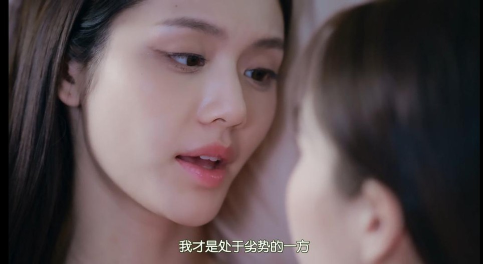 莓药在处理台词停顿与配合眼神方面,真叫人佩服不已。比如,SY在说到“只会是因为我们两个彼此不再有感觉”时稍作停顿,微微眨眼便开始蓄泪,是因为她代入Mae发现这其实是她唯一害怕发生的事情。此时镜头切换至LM,也皱起眉头直勾勾地盯着SY。只是短短一瞬间的演绎,不认真观察甚至就错过了,主创与莓药借机想表达的“外力无法阻止艾美相爱,唯有她们自己才可以”。