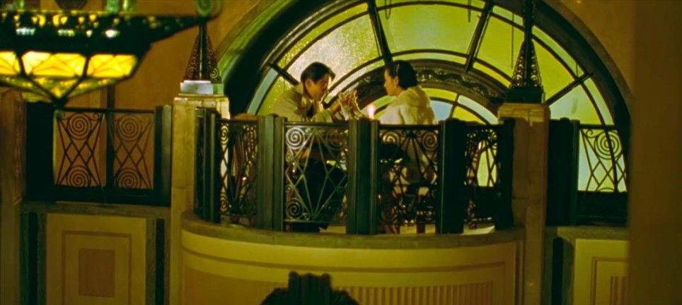 3.外滩外景和内景外滩和苏州河都是上海的母亲河,也是最能体现上海城市的地标点。在做电影里的上海栏目时我们统计过,拍摄上海的电影尤其是年代剧里,外滩出现的镜头是最多的,其次是苏州河。比如张艺谋的《摇啊摇,摇到外婆桥》(1995),李安的《色戒》(2007),娄烨的《兰心大戏院》(2019)。要是拍老上海电影里没有外滩和苏州河便觉得差点意思。外滩沿黄浦江立面的西洋老建筑从上世纪30年代起至今基本都没太变化,从90年代起,外滩立面背后逐渐树立起了不少高楼大厦,不少电影都有些穿帮镜头,但只要特意寻找角度拍摄局部或建筑细节还是能完美避开的。《人约黄昏》里外滩、苏州河都有,而且还有外滩老建筑里的内景,堪称优秀!