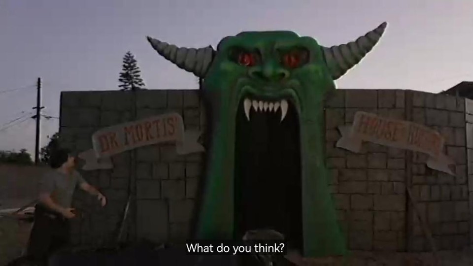 在开播前我就已经瞄到数十条电影节影评一同赞赏这个片段的黑暗之处,虽然已经被剧透到了凶手并不是一水的超自然实体而是杀手。和去年的V/H/S/85一样,Carl Garrison是第一个被官宣成为致命录像带的演员也是凶手,这个故事非常黑暗我喜欢。 众所周知80年代最热门的《月光光心慌慌》《13号星期五》给那个年代的人们带来了一个血浆遍地的杀手年代,各家各户就如同本篇故事kidprint里,一个小镇上儿童接连不断神秘失踪案件一样搞得人心惶惶。 老板Tim Kaplan所在的卡普兰电器,在万圣节到来之际在给镇上的儿童录制影像,由于最近的儿童失踪事件越来越频繁。以免当孩子失踪时无证照无来源无线索。但很快这些好意录制的影像将成为整个黑暗事件的中心。